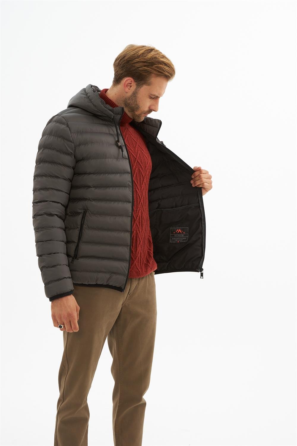 Erkek Çıkarılabilir Kapüşonlu Basic Şişme Mont Antrasit 32DNGRANT -