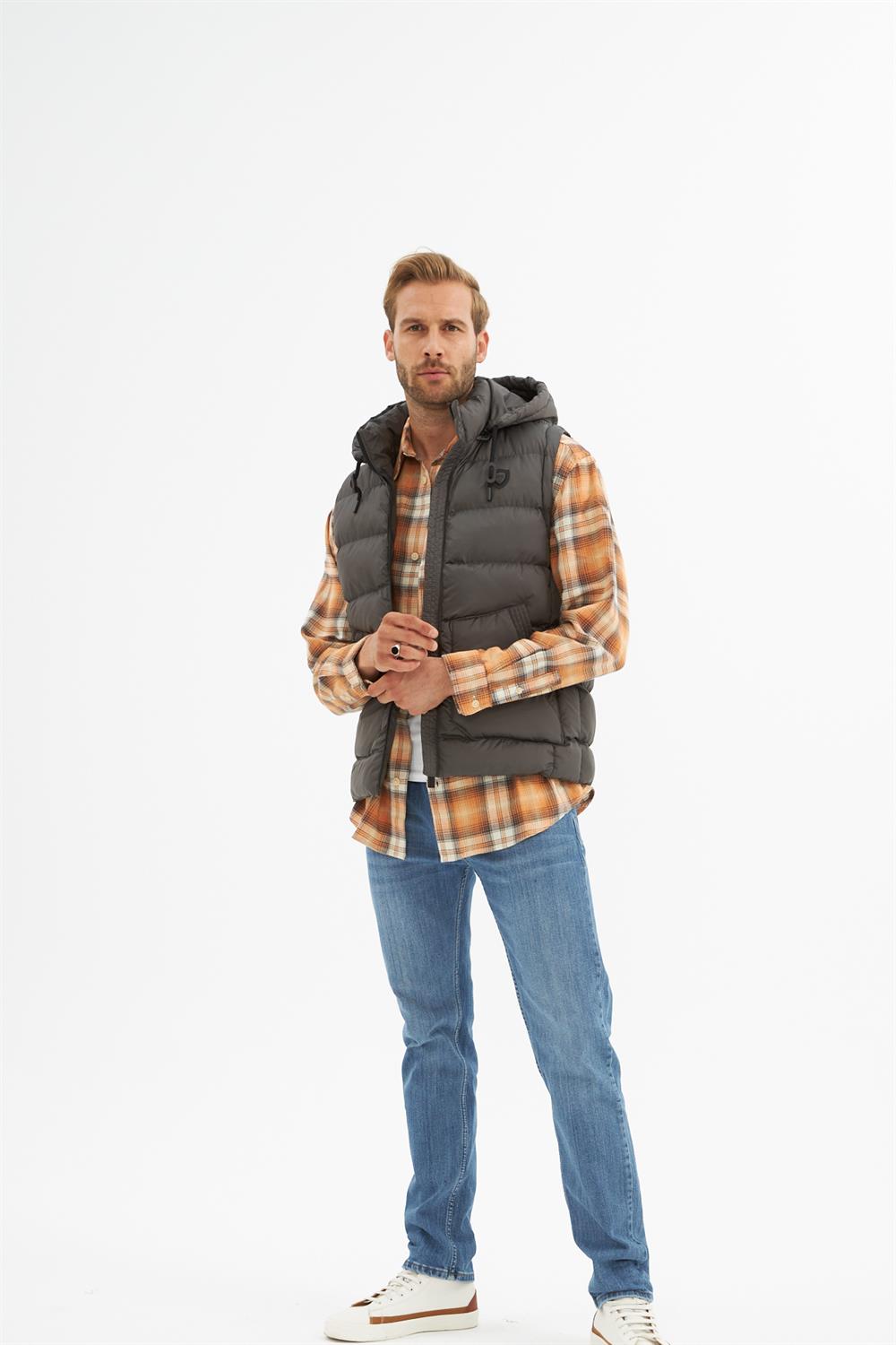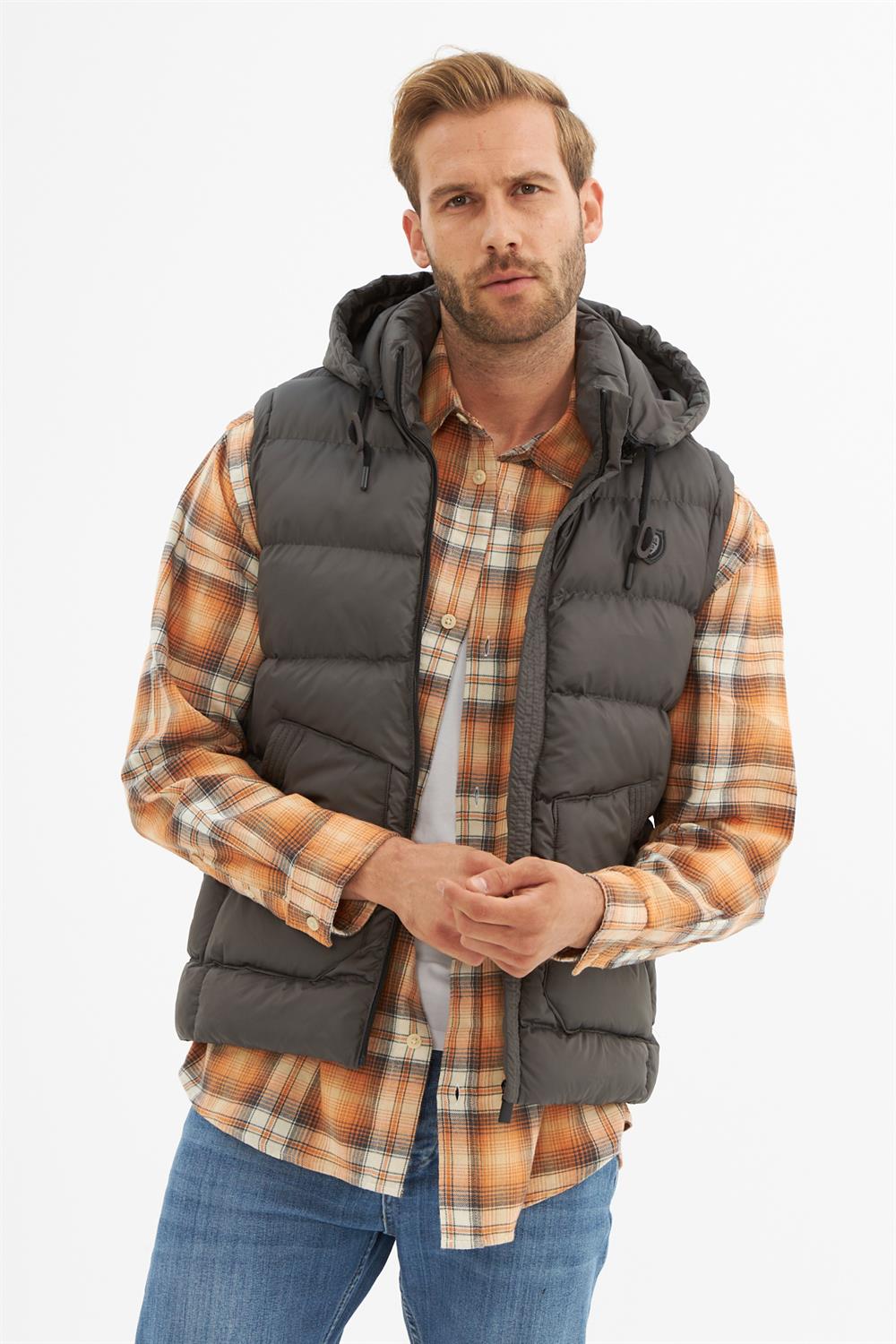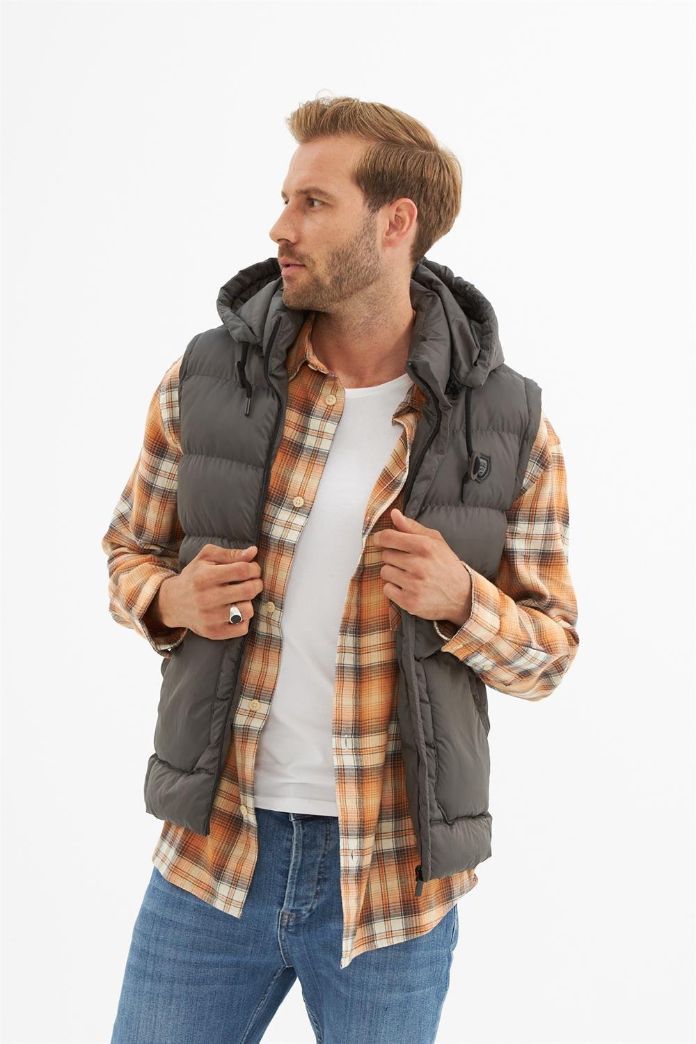 Erkek Çıkarılabilir Kapüşonlu Standart Kalıp Şişme Yelek Antrasit 536DNGR -