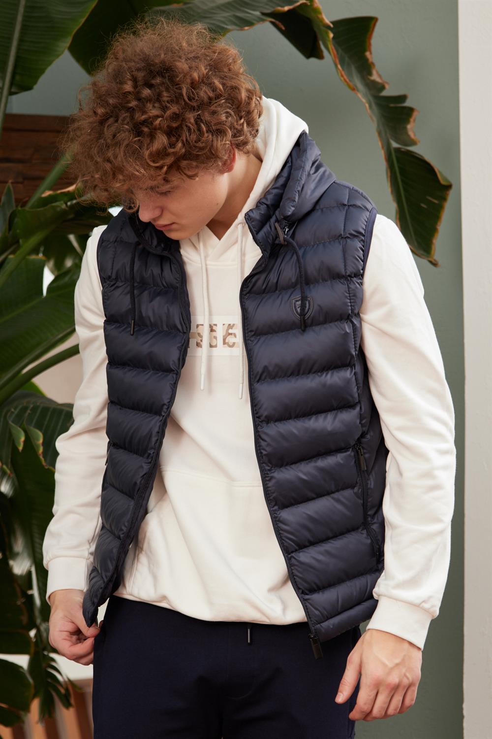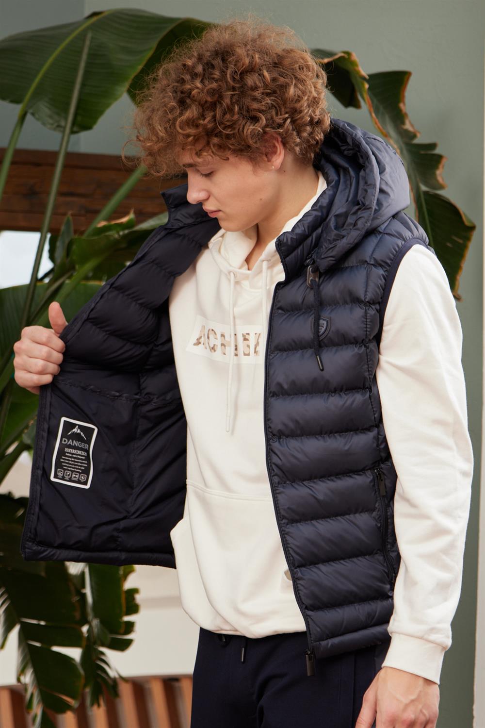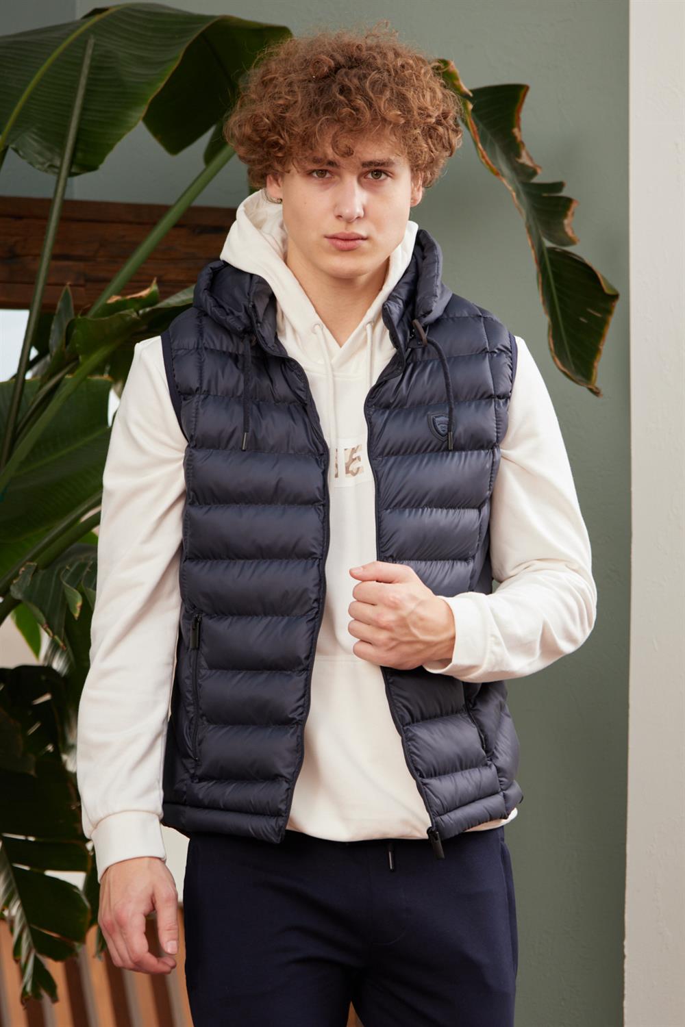 Erkek Çıkarılabilir Kapüşonlu Standart Kalıp Şişme Yelek Lacivert 536DNGR -