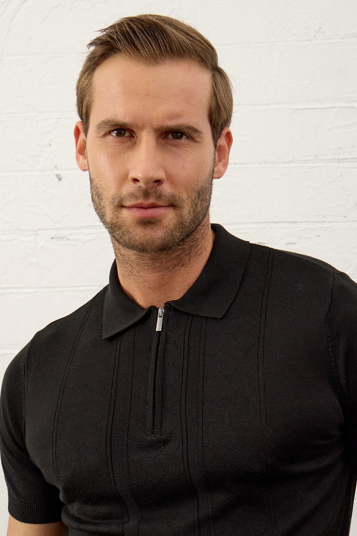 Erkek Fermuarlı Slim-Fit Yazlık Triko T-shirt Siyah 5004DNGR