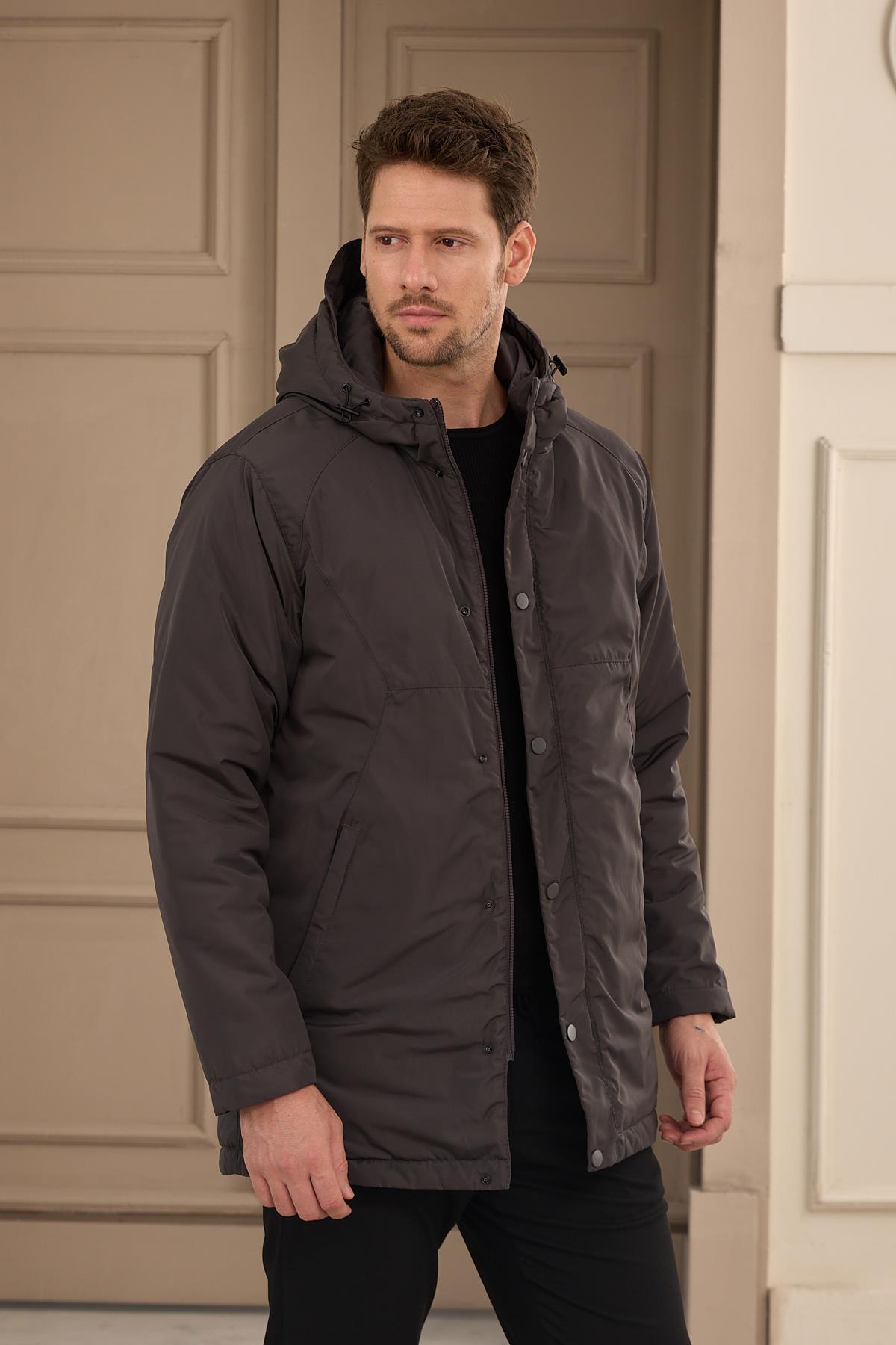 Erkek Kapüşonlu Su Geçirmez Mont Kaban Antrasit 3817DNGR