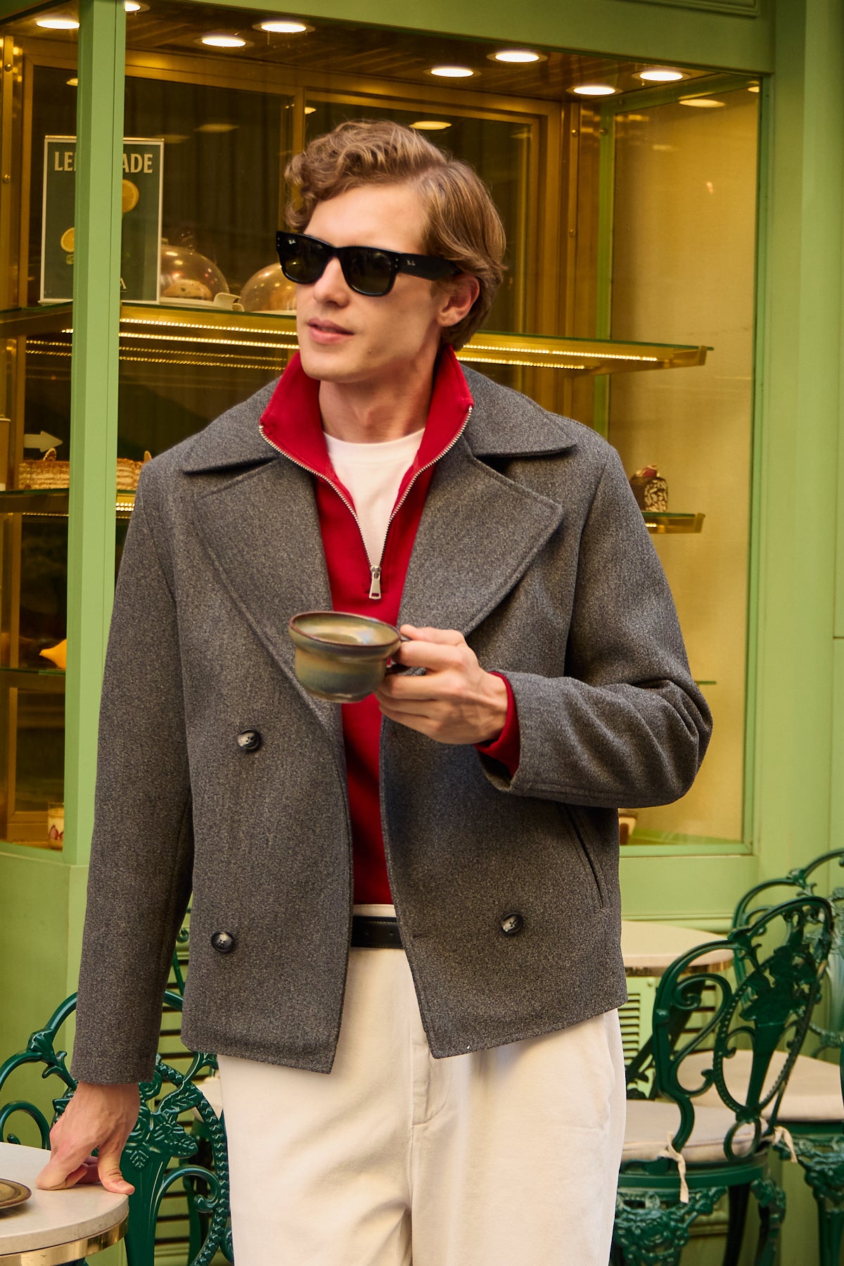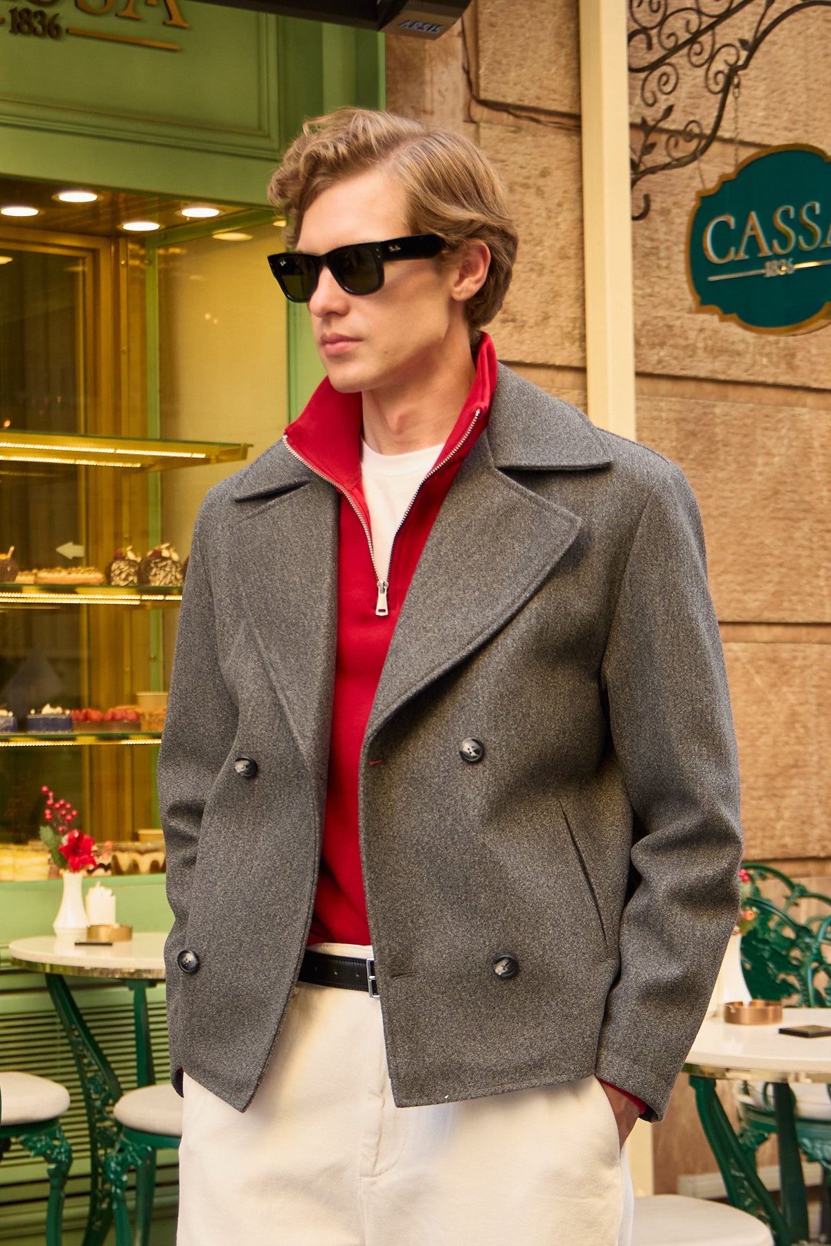 Erkek Kruvaze Kaşe Mont Ceket Gri  4121DNGR