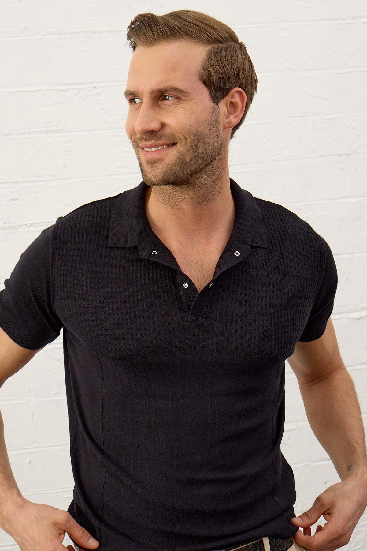 Erkek Slim-Fit Yazlık Triko T-shirt Koyu Lacivert 5002DNGR