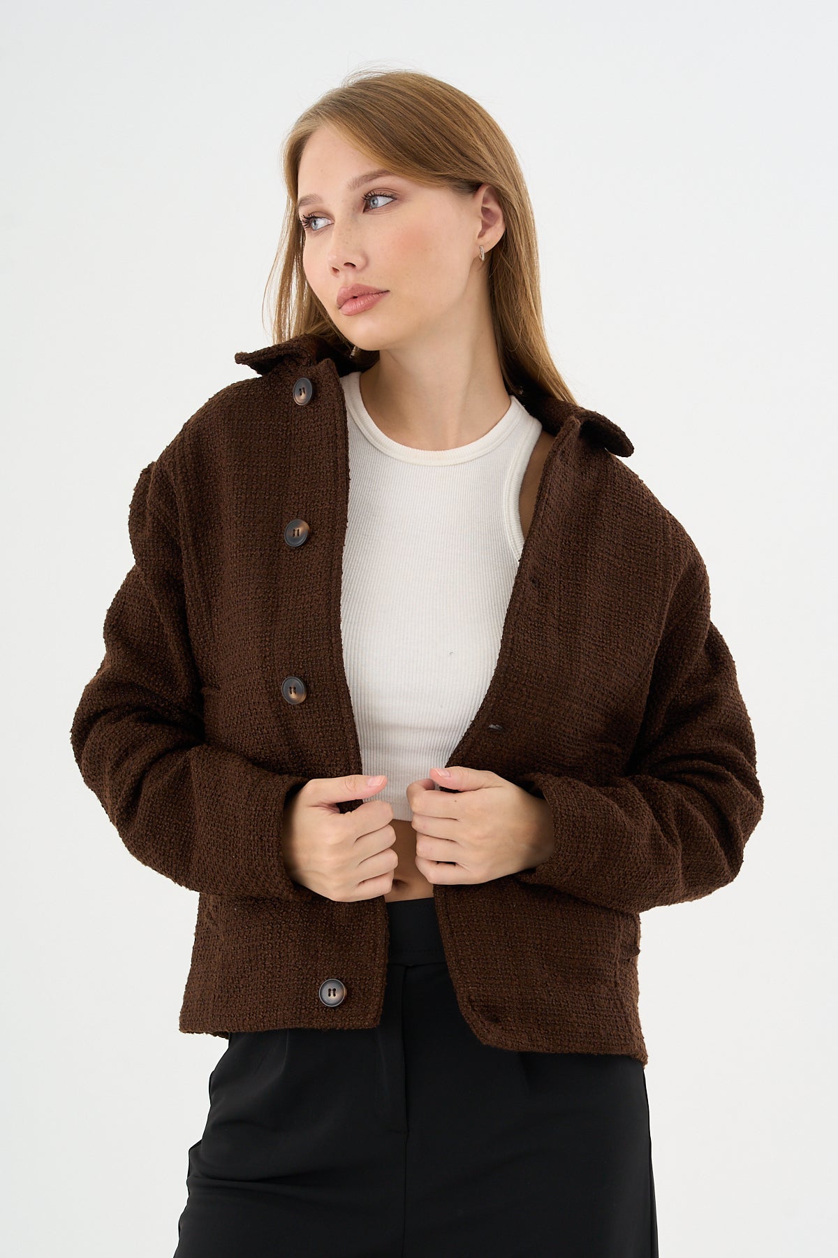Özel kumaştan üretilmiş premium tasarım ceket, modern şıklığı ve yüksek kaliteyi bir araya getiriyor. Günlük kullanımda konforu artırırken, zarif detaylarıyla stilinizi ön plana çıkarır. Hem casual hem de smart kombinlerde şıklığı yakalamak isteyenler için ideal bir seçimdir.